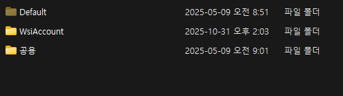 WsiAccount 말고도 아래 폴더들이 같이 생기는 경우가 많습니다.