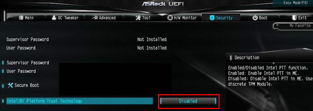 INTEL 메인보드 TPM 설정 방법